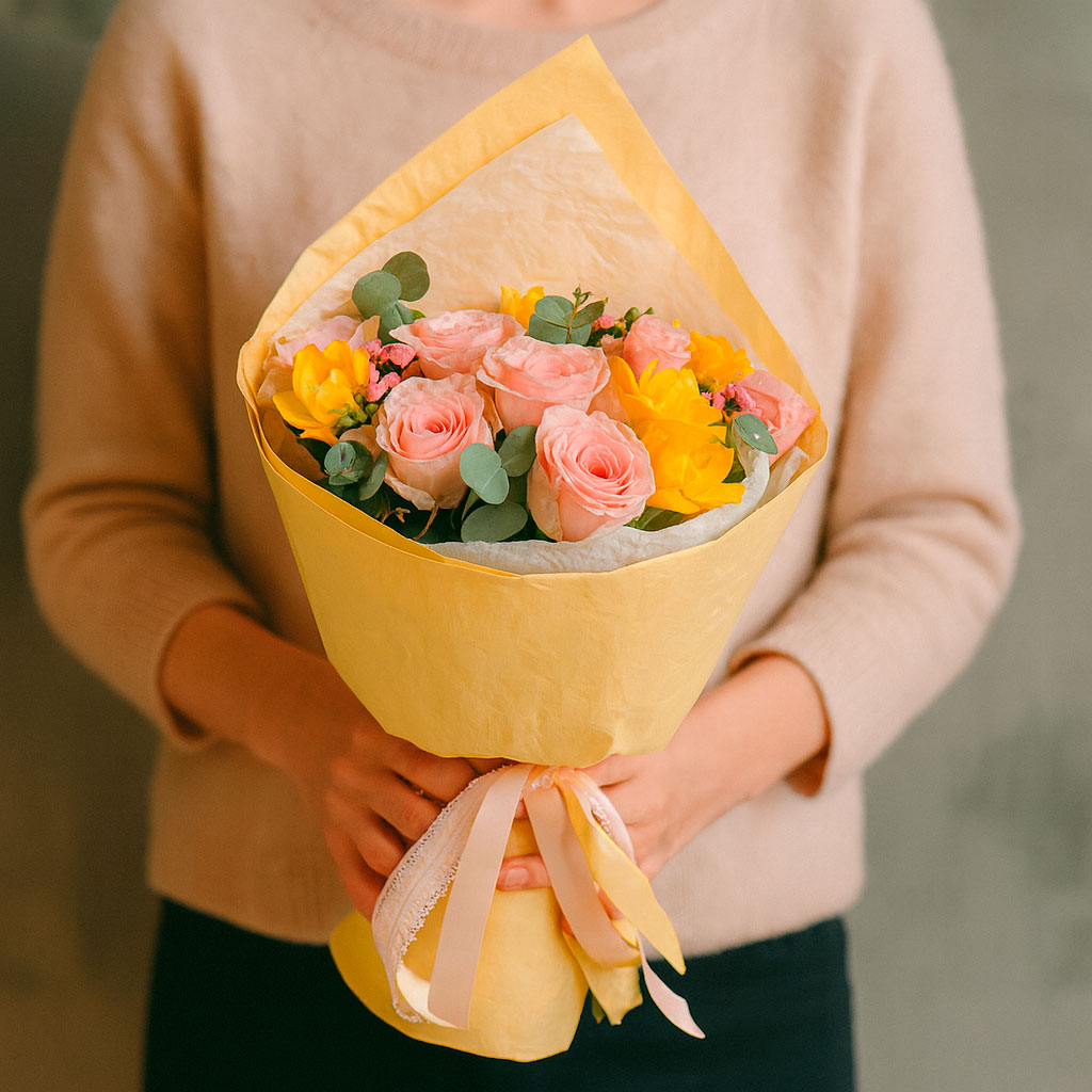 Подарите этот изысканный букет, чтобы он стал отражением ваших эмоций, освещая сердца окружающих.