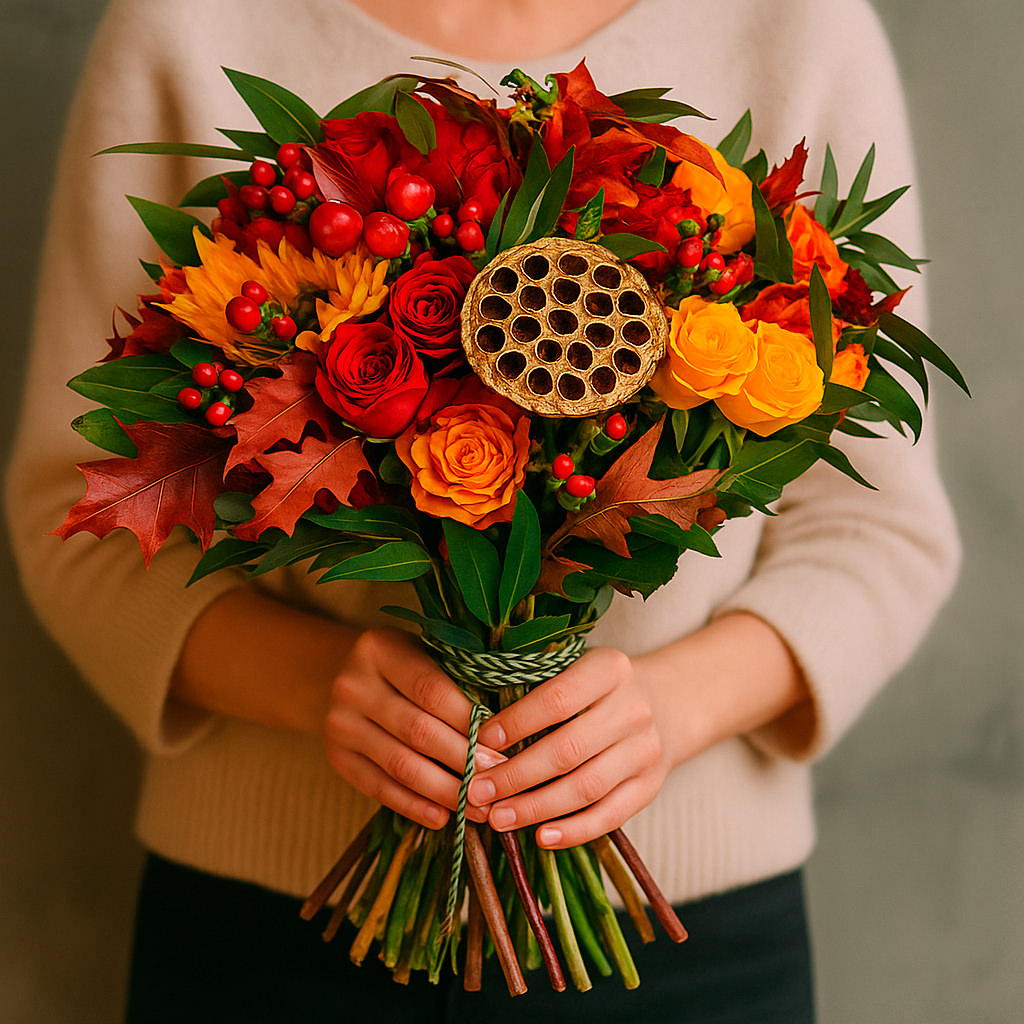 Цветочный букет «Осенний вихрь» — это изумительное зрелище, полное ярких и насыщенных цветов, которые создают атмосферу радости и уюта. Утонченный стиль и гармоничные оттенки делают букет превосходным акцентом в любом интерьере.